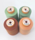 ポリエステル素材の中でもミシン糸用として特別に紡糸された、高強力、低伸度、低収縮タイプの原糸を用い、さらに高度な加工技術によって、一段と〈可縫性〉を高め、使用範囲を広げた、スーパークォリティのミシン糸です。