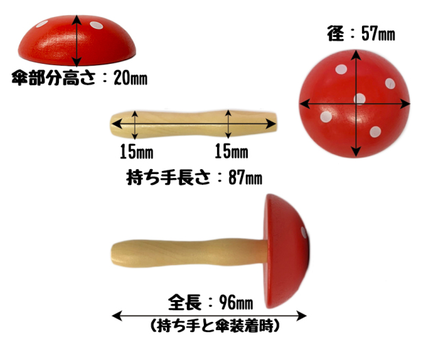 ・全長:96mm (持ち手のみ87mm/傘部分高さ20mm)